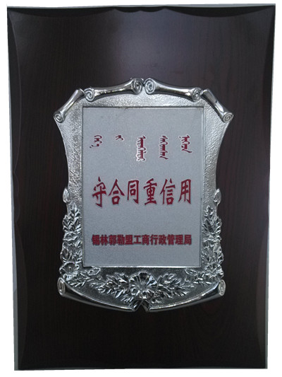 公司榮獲錫盟工商局頒發(fā)守合同重信用認證